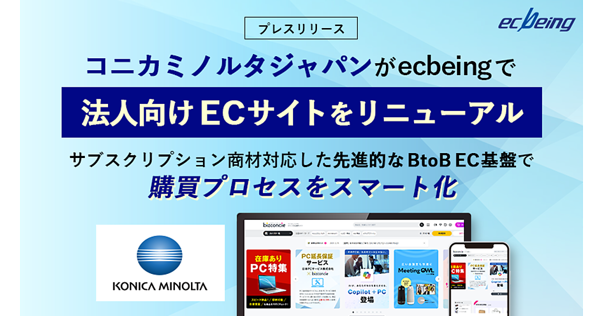 コニカミノルタジャパンは2014年からECサイト構築プラットフォーム「ecbeing」を導入し、「bizconcie」を運用してきた。今回のリニューアルに際しEC基盤には、ecbeingの法人向けECサイト構築プラットフォーム「ecbeingBtoB」を新たに採用した。