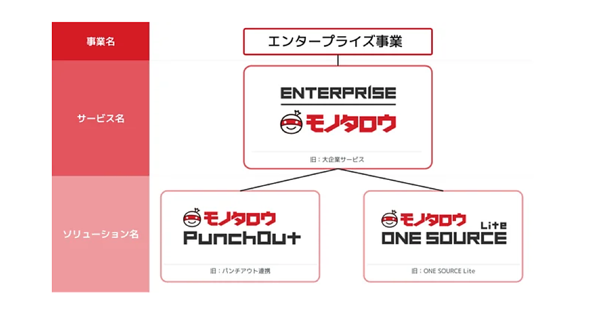 モノタロウは「エンタープライズモノタロウ」のロゴデザインも刷新した。基盤ブランドである「モノタロウ」の親しみやすさと信頼感をベースに一体感を保ちながら設計し、配色や形状、細部のデザインで堅実さ・堅牢さを表現したという。各ソリューションの視覚的イメージを統一することで、エンタープライズ事業が提供する一貫した価値を伝えるとしている。