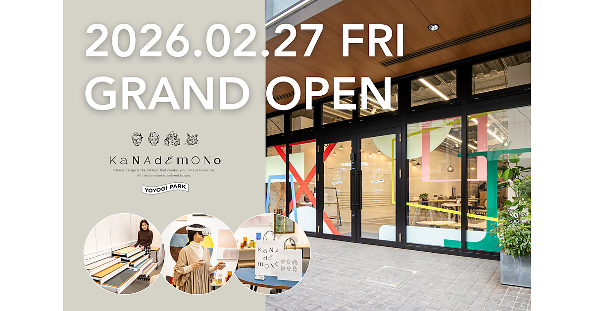 インテリアSNSを展開するルームクリップで、パーソナライズD2C家具ブランドを手がけるKANADEMONOカンパニーは2月27日、東京・代々木公園のショールームを体験型店舗「KANADEMONO YOYOGI PARK」としてリニューアルオープンする。