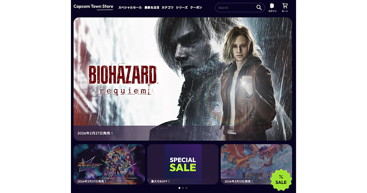 カプコンは2月16日、ポータルサイト「カプコンタウン」内に公式ストア「カプコンタウンストア」を開設した。新たにEC機能を追加し、デジタル戦略を強化する。