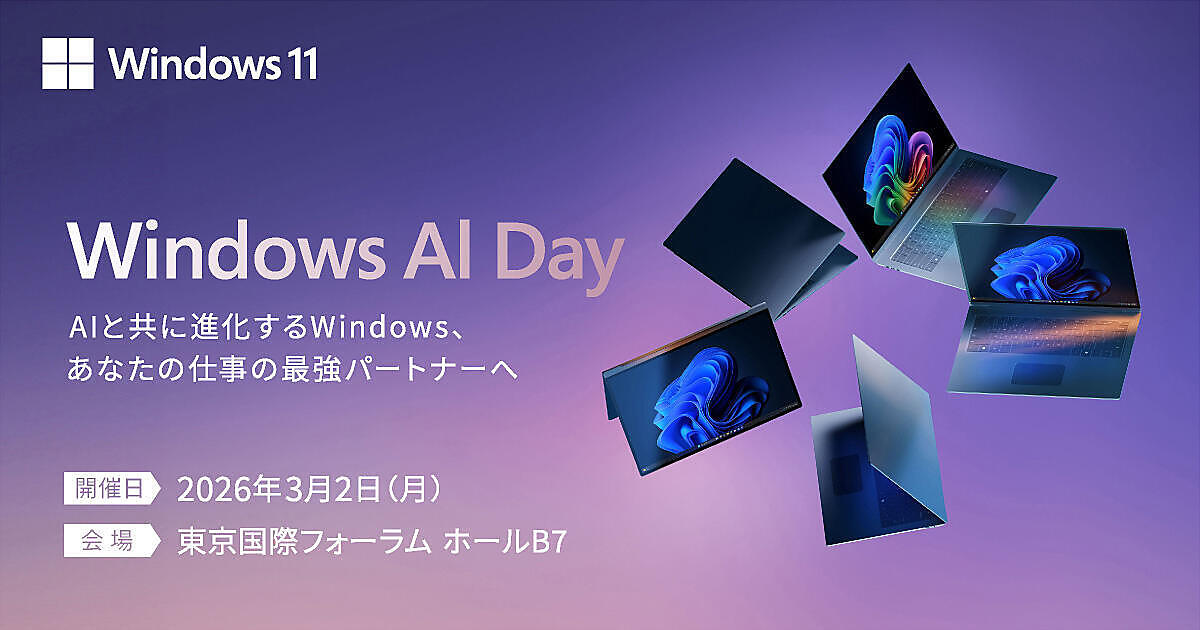 インプレスは、AI や最新のIT戦略に興味のある人、経営・経営企画/情報システム担当者向けのセミナーおよび展示会「Windows AI Day」を3月2日(月)に東京国際フォーラム ホールB7で実施する。