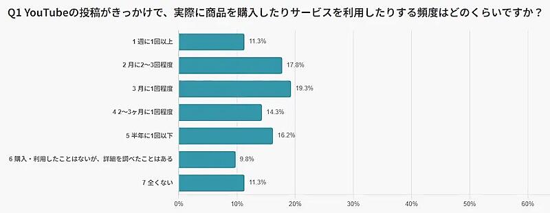 「YouTube」をきっかけにした購買頻度、約半数が月1回以上購入