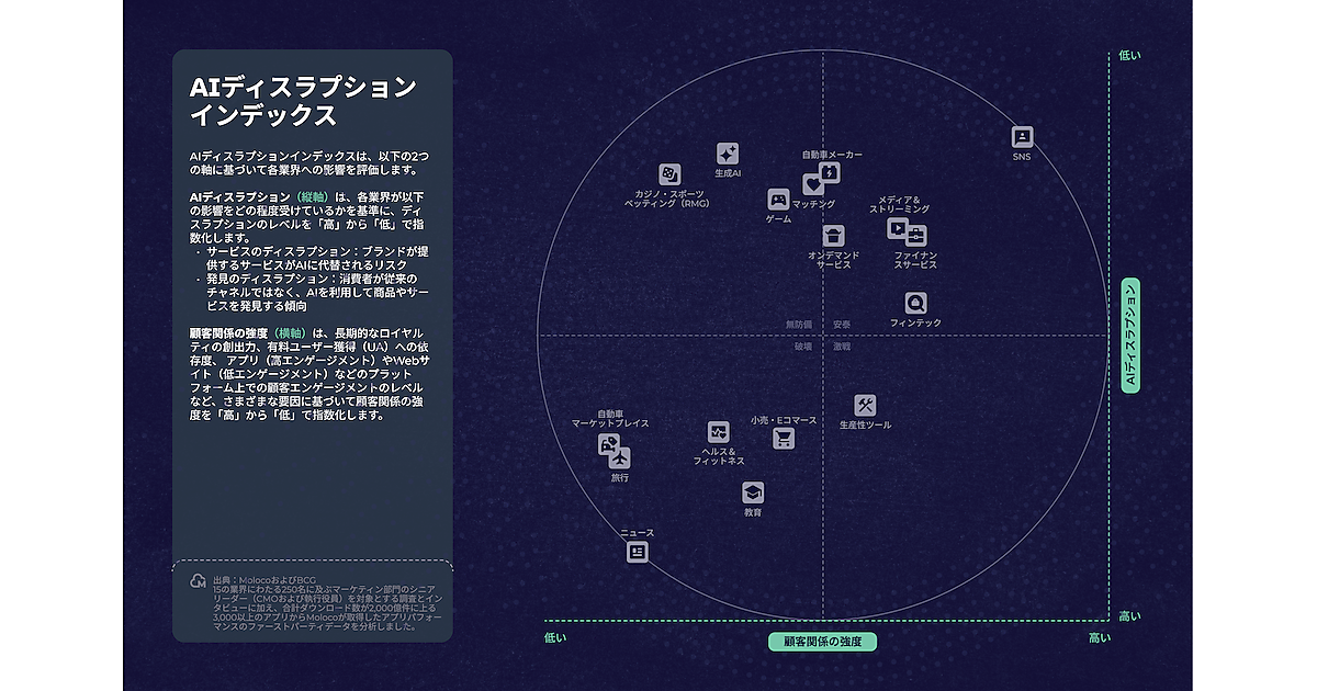 AI広告プラットフォームを展開するMolocoは3月11日、ボストン コンサルティング グループ(BCG)との共同調査レポート「AIディスラプションインデックス:AIによって一変する消費者の『発見』」を発表した。