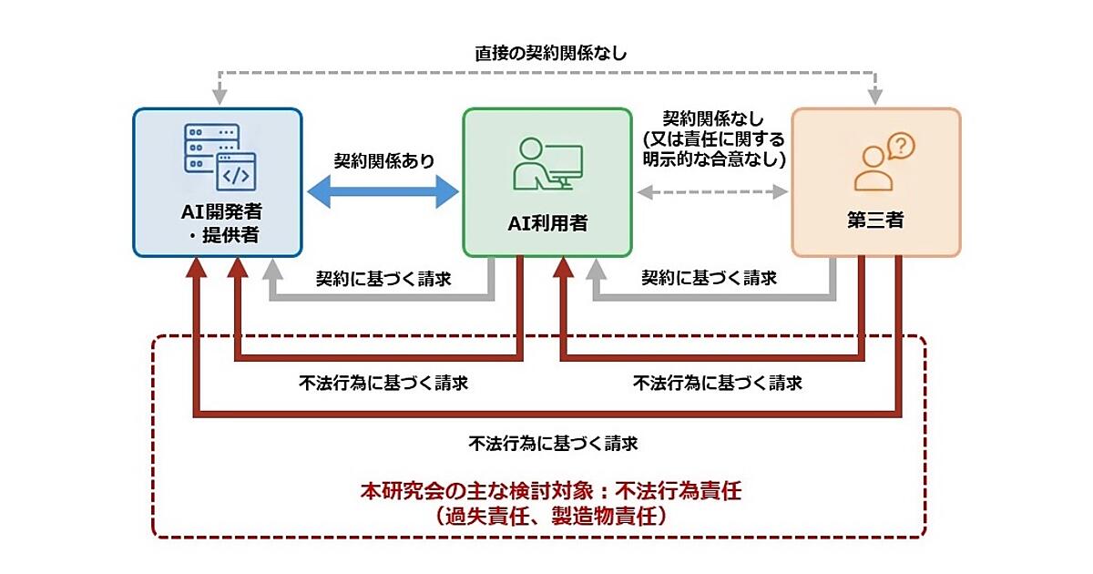 経済産業省は4月9日、AIの利活用によって第三者に損害が生じた場合の民事責任について、現行法に基づく解釈の方向性を整理した「AI利活用における民事責任の解釈適用に関する手引き〔第1.0版〕」を公表した。AIの開発者、提供者、利用者それぞれの責任範囲に関する予見可能性を高め、AI活用の促進と紛争の円滑な解決につなげる狙いがある。