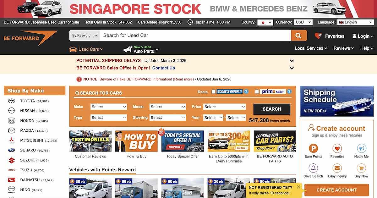中古車などの越境ECサイトを運営するビィ・フォアードは4月14日、2025年12月期の売上高が過去最高の1609億4642万円に達したと発表した。中古車の販売台数は19.0万台で過去最高販売台数を記録したという。