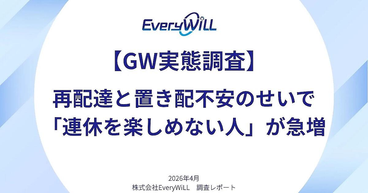 EveryWiLLが実施した「GWにおける宅配荷物の受取りに関する意識調査」によると、数日間家を空ける場合、約8割が置き配は防犯面で「不安を感じる」と回答している。さらに、約7割が「連休中に荷物を受け取れない」「置き配が不安」などを理由に、連休中のECサイト利用を控えたことがあることがわかった。