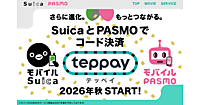 「teppay」は、「モバイルSuica」および「モバイルPASMO」のアプリを通じて提供され、追加のアプリダウンロードや新規登録は不要。既存アプリ内でそのまま利用できる。