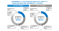 電子取引関係書類の保存方法について、「猶予期間が設けられたので、電子で受け取った請求書を、従来通り紙に印刷し保存している」と回答した企業の割合は31.6%で、対応が先送りになっている様子がうかがえる。また、「取引先に紙での請求書発行に切り替えてもらい、紙の請求書を保存している」と6.3%の企業が回答。電子帳簿保存法への理解浸透にも課題があるようだ。