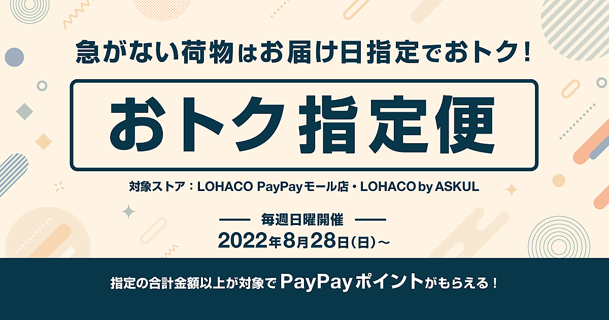 ユーザーが「LOHACO」で商品を注文する際、購入後すぐに受け取る必要がない商品の配達日を標準より遅い日に設定した場合、PayPayポイントを付与する。ポイント付与は注文日の翌月第1週目に付与する予定。