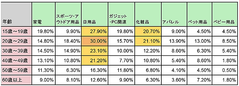 コロナ禍以降、他の年代と比べて15歳~29歳の若年層が、Amazonで化粧品を買うようになっていることがわかった。