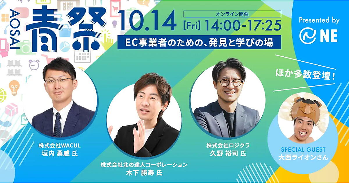 Hameeの100%子会社でECプラットフォーム「ネクストエンジン」を運営するNEは、EC事業者向けオンラインイベント「青祭-AOSAI-2022」を10月14日(金)に開催する。