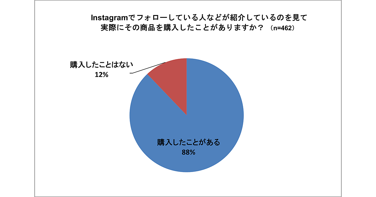 - 回答者のうち約9割がインスタグラムをきっかけとした商品購入の経験がある