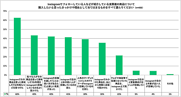 もともとインスタグラムはユーザー同士のコミュニケーションが活発で、良好な関係が情報の信憑性につながる土壌がある。その中でも特に「食」は日常の中にあるため、購買行動につながりやすいことが調査結果から読み取れる。