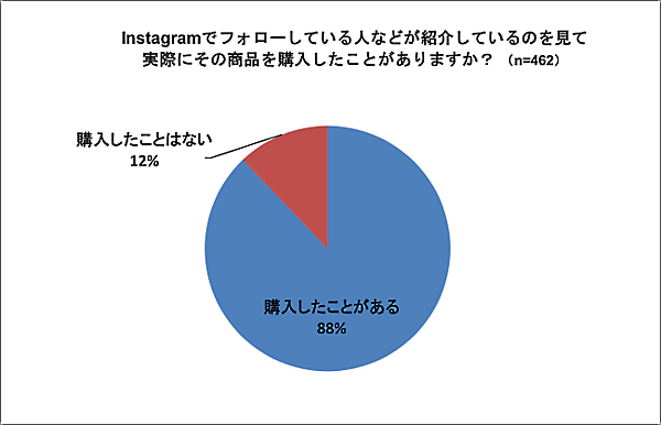 アイランドは、インスタグラムをきっかけにした商品購入は約9割にのぼっているという調査結果から、インスタグラムの商品購買への効果は大きいと考えられると分析している。