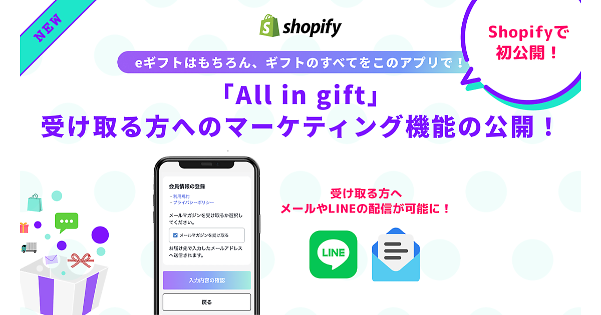 「Shopify」向けアプリの開発などを手がけるハックルベリーは10月5日、Shopifyのギフト贈呈アプリ「All in gift」に、「eギフト」を受け取った人向けの「マーケティング機能」を追加した。リピーター促進のための施策実現をサポートする。