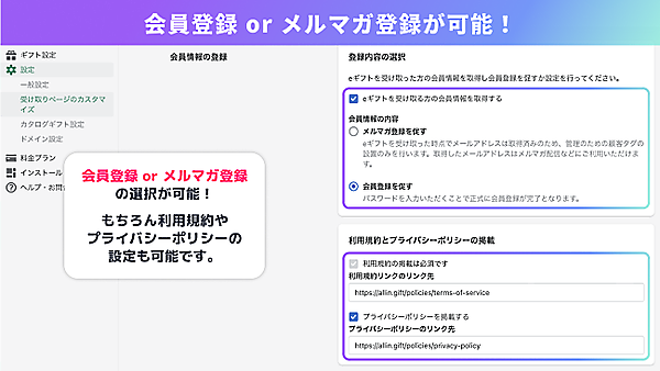 eギフトを受け取った人への会員登録誘導が可能に