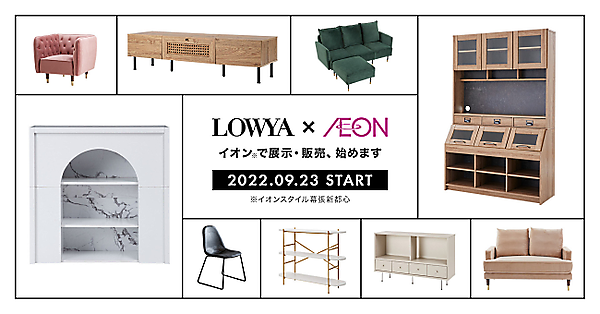 同社では9月23日より、運営する家具・インテリア通販サイト「LOWYA(ロウヤ)」で販売する自社ブランド商品について、創業以来初となる卸売販売を開始した。第1弾としてイオンリテールが千葉県内で運営する大型ショッピングセンターの「イオンスタイル幕張新都心」内に、両社でコラボレーションした売り場を開設している。