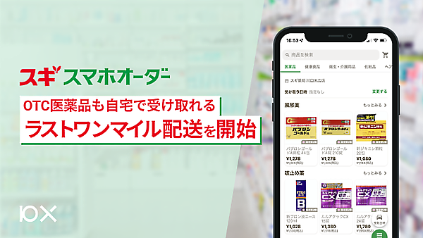 ラストワンマイル配送の対象店舗は埼玉県の川口末広店。川口末広店から2km圏内を配達エリアとしている。顧客は、スギ薬局「スギスマホオーダー」アプリから商品を購入し、受け取り方法で「配達」を選択すると利用できる。