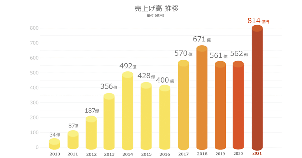 海外向けに中古車のECを手がるビィ・フォアードの2022年6月期決算によると、売上高は前期比44.9%増の814億8822万円に拡大した。主力商品の中古車輸出台数は前年比6%増の13万3370台。