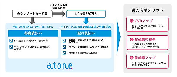 このほか、新「atone」会員は実店舗でも後払いが利用可能。これによって、導入企業は実店舗とECの相互送客など、OMO戦略につなげることができる。
