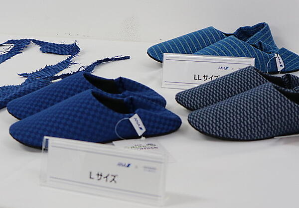 「ANA特製ルームシューズ」は、社内新規事業提案制度による発案。ANAグループの持続可能な社会の実現をめざす「ANA Future Promise」と、オンワード商事の廃棄問題のポジティブな解決をめざす「オンワード商事Re-make-upプロジェクト」が共感し、実現したという。