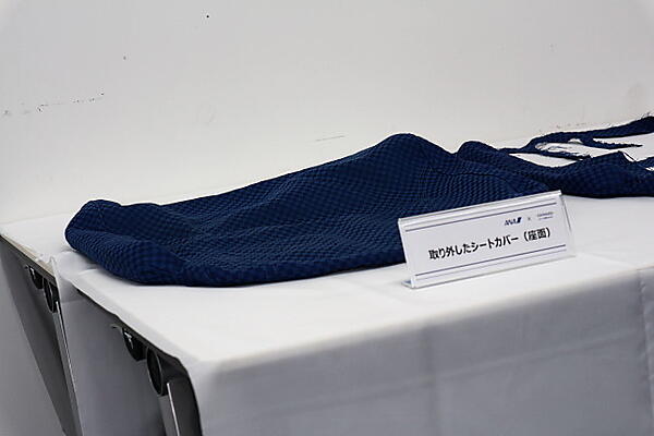 航空機部品の1つでもあるシートカバーは、生地の色あせや品質表示タグの印字が読みにくいといった理由により廃棄となったシートカバーは、一定の基準で定期的にクリーニングや交換を行っている。