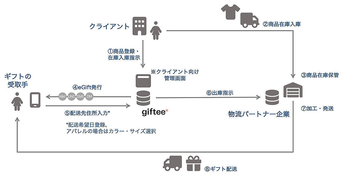 「Corporate Gift」には先行して、ギフトに特化したフルフィルメントの仕組みを提供開始した。今後は「giftee for Business」サービスや「eGift System」サービスの顧客に対しても随時提供を開始する。