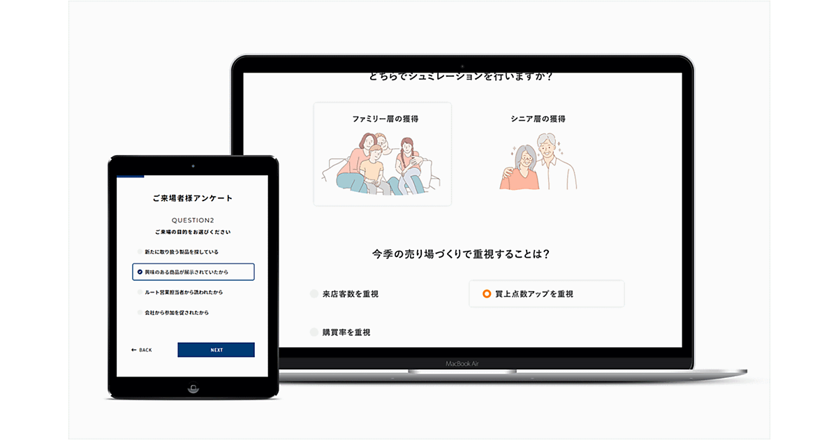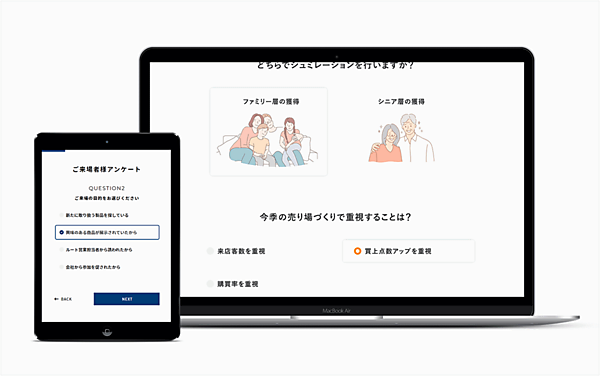 シーズンや催事に応じた売り場作りの提案に活用できる。用途やニーズをヒアリングすることで、大口顧客には毎回飽きない新たな提案が可能。取引の少ない小口・休眠顧客には的確な提案営業が、Webで効率よくできるという。