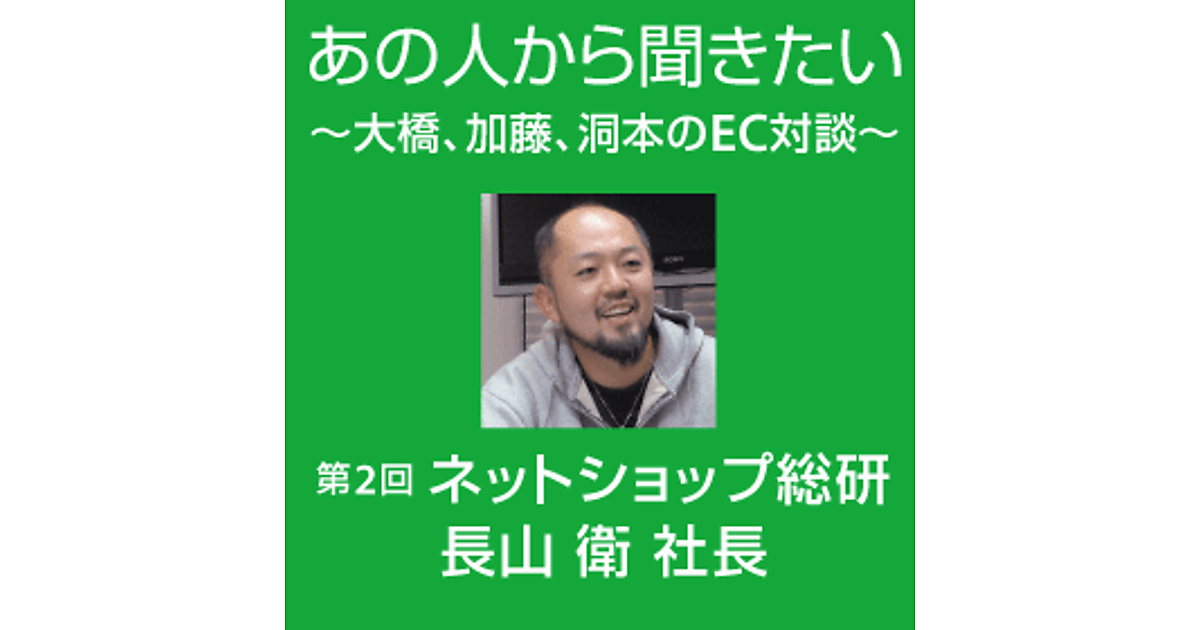 現役の有名ネットショップの運営者達が講師となり、ネットショップ運営者向けに通信講座を実施しているEコマース戦略研究所の代表パートナー3人が、それぞれ話を聞きたいネットショップ運営者に会い、現在のEC市場などについて対談する企画「あの人から聞きたい~大橋、加藤、洞本のEC対談~」の第2回。