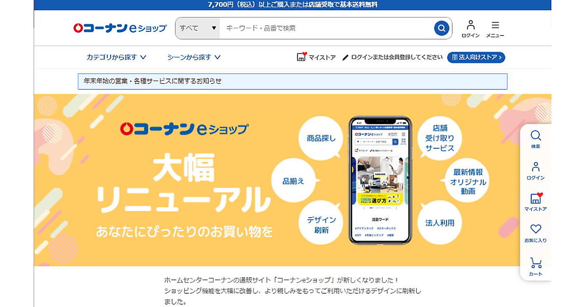 ホームセンターのコーナン商事はこのほど、ECサイト「コーナンeショップ」リニューアルした。