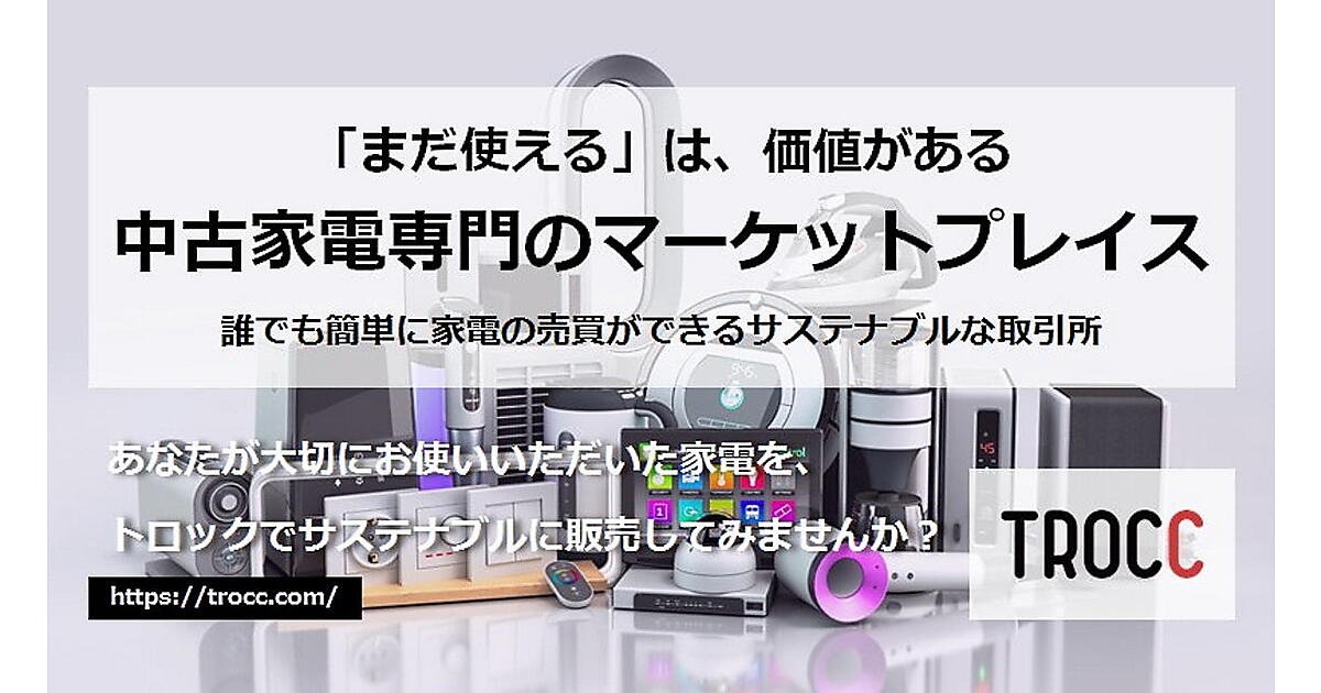 ちょいとが運営する中古家電専門のマーケットプレイス「TROCC(トロック)」は、消費者による出品のほか、法人・個人事業主がストアを出店して中古家電を販売することができる。