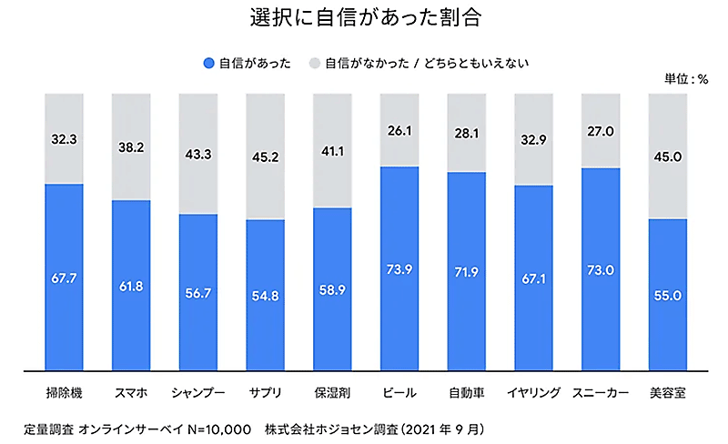 Googleが発表した商品選択に対する自信の度合いを示す「肯定度」の関係性を示す分析結果から学ぶ、リピート購入の重要なカギとは