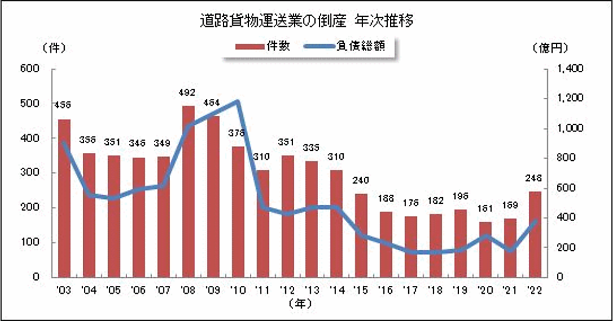 「物価高」で道路貨物運送業の倒産が急増、今後は「2024年問題」もネックに