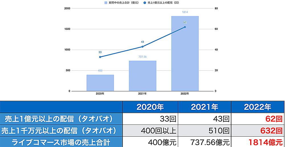 上の図は数年前から中国のネット通販に大きな影響を与えているインフルエンサーのライブコマースの表です。