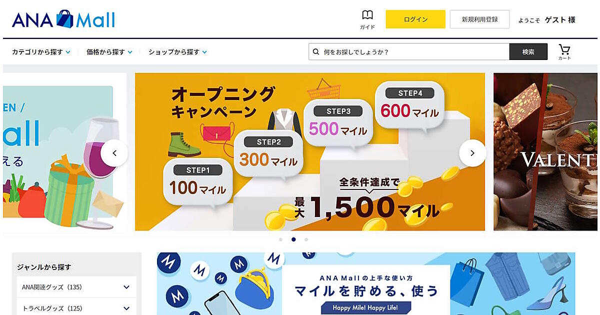 ANAのマイルが貯まる・使えるECモールを1月末に開設し、パートナー企業は出店形式で参加することが可能。全店舗でANAマイルが貯まり、「1マイル1円相当」で使うことができる。
