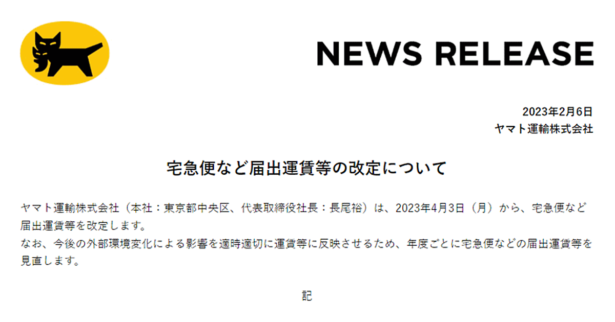 送料値上げを巡っては、SGホールディングスグループの佐川急便が「飛脚宅配便(飛脚クール便含む)」「飛脚特定信書便」「飛脚ラージサイズ宅配便」の運賃を4月1日に値上げすると発表している。