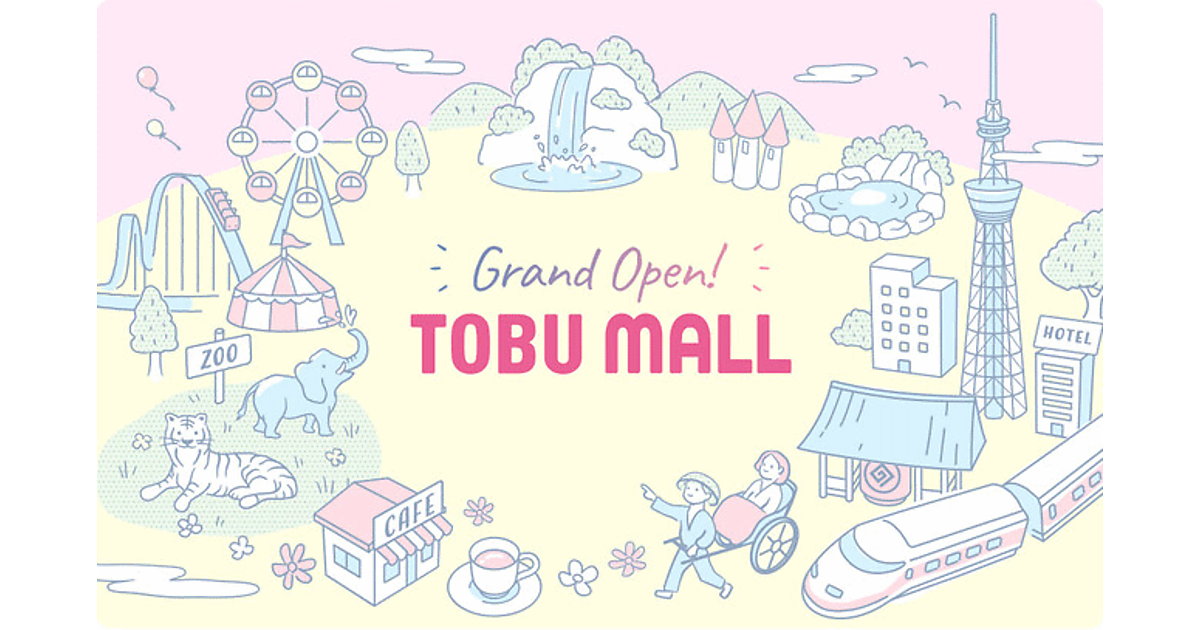 ECサイトの名称は「TOUB MALL」。東武バス、東武百貨店、東武トップツアーズ 東武ホテルマネジメント、日光金谷ホテル、東武商事、東京スカイツリー、東武動物公園などが出店する。