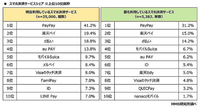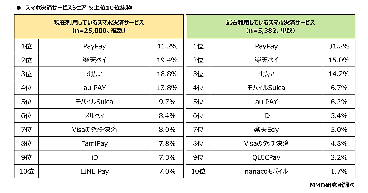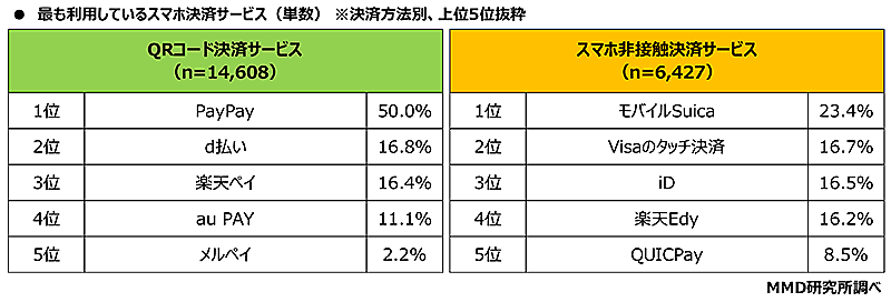 QRコード決済トップは「PayPay」、非接触決済は「モバイルSuica」