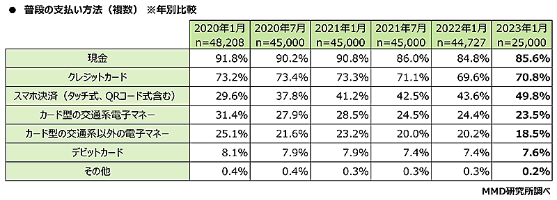 普段の支払い方法「スマホ決済」が2022年から6.2ポイント増加