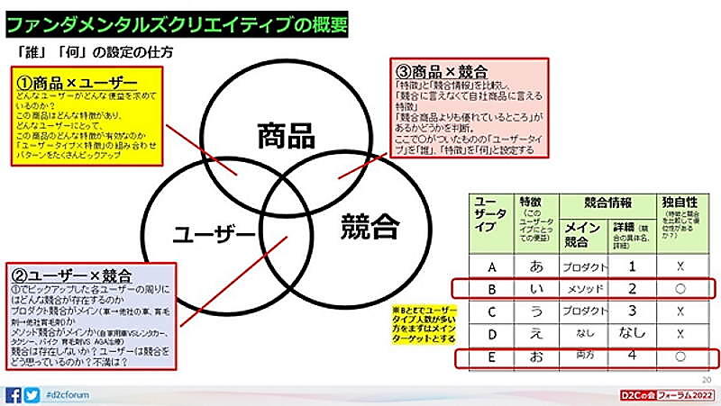 - ファンダメンタルズマーケティング:商品そのものやユーザーのペルソナ、インサイトを分析してコミュニケーションを設計する
