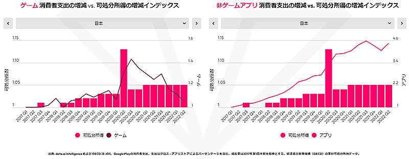 2022年、消費者の可処分所得に対して大きな影響を受けたのはゲームアプリで、消費者支出が大幅に減少した。