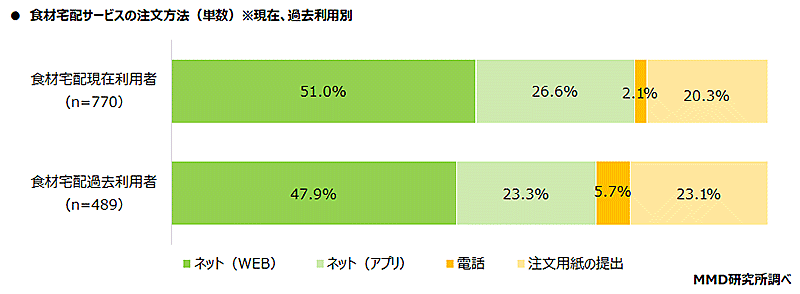 食材宅配サービスの注文方法、現在利用者は「Web」が51.0%