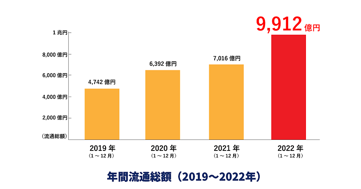 ecbeing(イーシービーイング)は、EC構築プラットフォーム「ecbeing」の2022年における年間流通総額が、前年比41.3%増の9912億円だったと発表した。