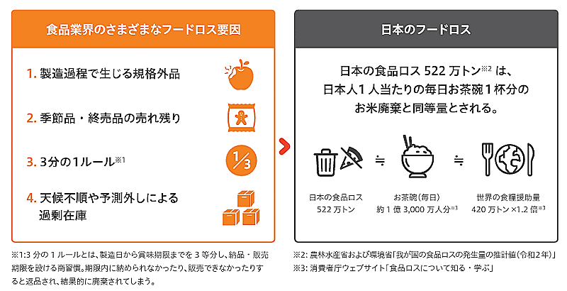 クラダシのメイン事業はフードロスのECサイト「Kuradashi」の運営。「3分の1ルール」「規格外品」「季節品・終売品」などの理由で廃棄予定となった商品をサプライヤーから安価に仕入れ、ECサイトやアプリを通じて会員に販売している。累計会員数は3月末時点で46万2000人。
