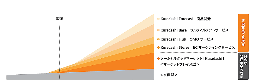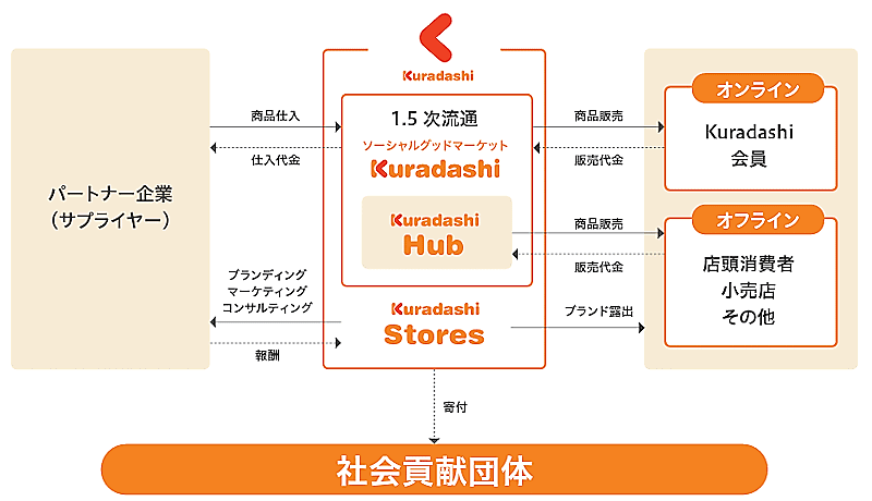 「Kuradashi」の認知拡大などを目的にオフライン店舗を展開する「Kuradashi Hub」事業、「Kuradashi」会員に向けてブランド認知などを支援するブランディング事業「Kuradashi Stores」も手がけている。