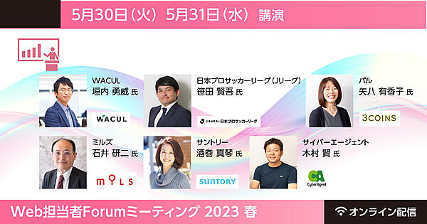 キリン、Jリーグ、サントリー、サイバーエージェントなどが登壇する「Web担当者Forum ミーティング 2023 春」を5月30日(火)、5月31日(水)に開催します。