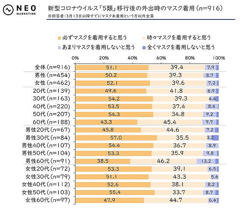 「5類」移行後もマスク着用は継続派が多数