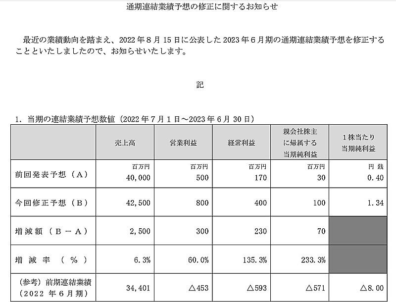 アイスタイルでは実店舗の増収・増益が想定を上回るペースで推移しており、2023年6月期の通期連結業績予想を5月に上方修正している。
