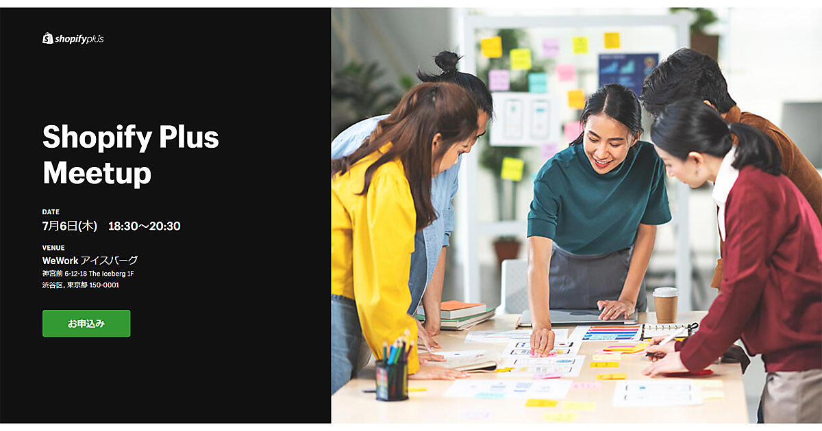 Shopifyは7月6日(木)、ECのバックオフィス業務にフォーカスしたオフラインイベント「Shopify Plus Meetup」を開催する。