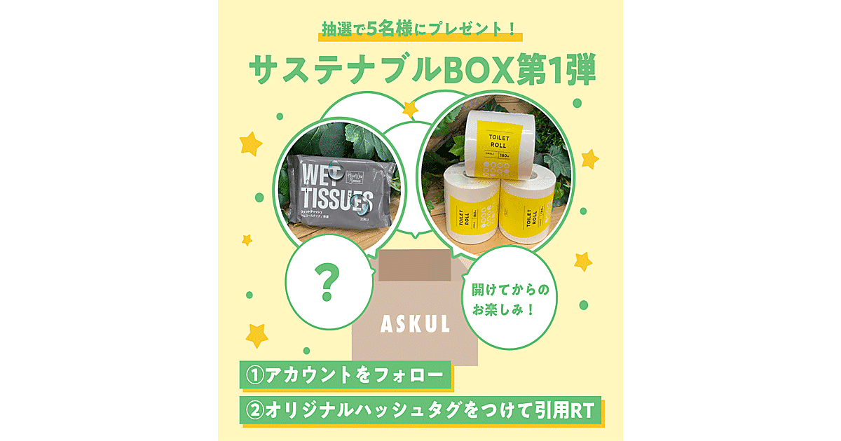 「もらうだけで地球に貢献!サステナブルBOXプレゼント第1弾」は、ASKUL公式Twitterにおいて実施する、環境月間に合わせたキャンペーン企画。6月14日から7日間限定で行う。